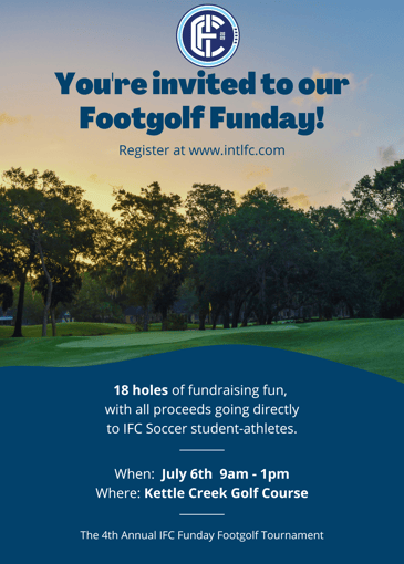 We are delighted to be hosting our 4th annual Footgolf Funday in aid of International FC programming on Sunday, July 6th at Kettle Creek Golf Course in King City.